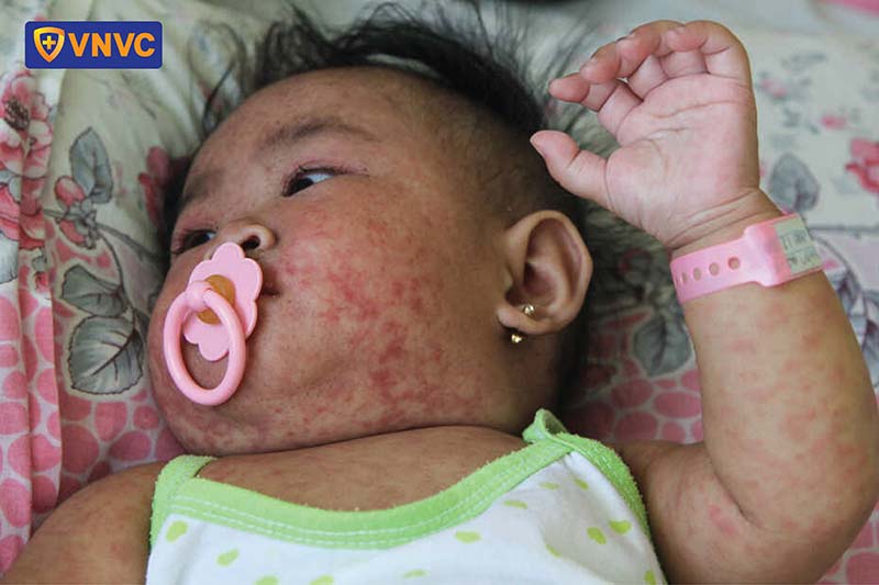 - Viêm não, viêm màng não: Đây là biến chứng khá phổ biến, cứ 1.000 trường hợp lại có 1 ca biến chứng viêm não với nguy cơ gây tử vong rất cao, cho dù may mắn vượt qua cơn nguy kịch thì người bệnh vẫn phải đối mặt với rất nhiều di chứng nặng nề kéo dài sau này. Biến chứng hệ thần kinh trung ương do sởi gây ra thường gây sốt cao, lơ mơ, rối loạn ý thức, mất định hướng, rối loạn thăng bằng, hôn mê, co giật, tiểu/trung/đại tiện không tự chủ,…