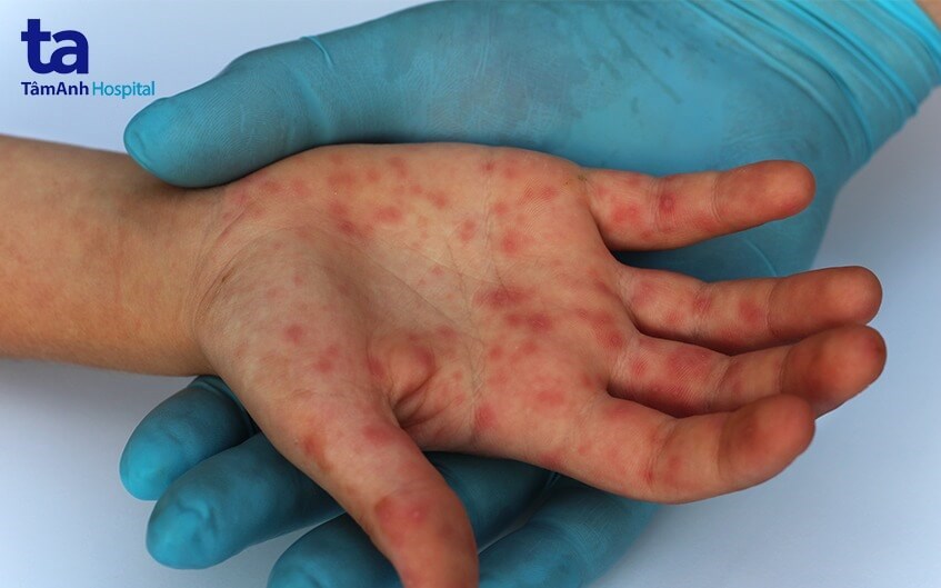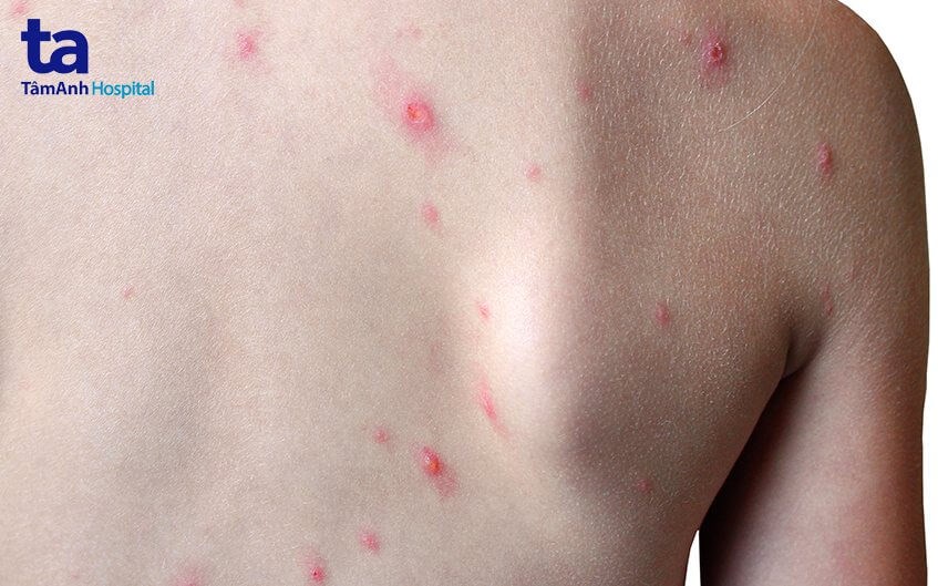 - Các nốt phát ban ban đầu chỉ hơi sần trên bề mặt da và sau đó phát triển nghiêm trọng hơn, trở thành mụn nước, sưng to rồi dần chuyển sang mụn mủ, sau đó khô lại, đóng vảy và xẹp xuống.