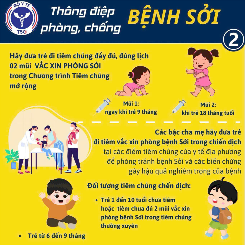 Thực tế từ đầu năm đến nay, cả nước đã có 6 trẻ tử vong liên quan đến bệnh sởi và gần 43.000 ca nghi sởi tại 63 tỉnh, thành phố, do đó các chuyên gia y tế khuyến cáo, các bậc phụ huynh cần chủ động phòng bệnh cho con bằng cách tiêm vaccine sởi càng sớm càng tốt, đồng thời rà soát lịch tiêm chủng của cả gia đình để tránh trở thành nguồn lây.