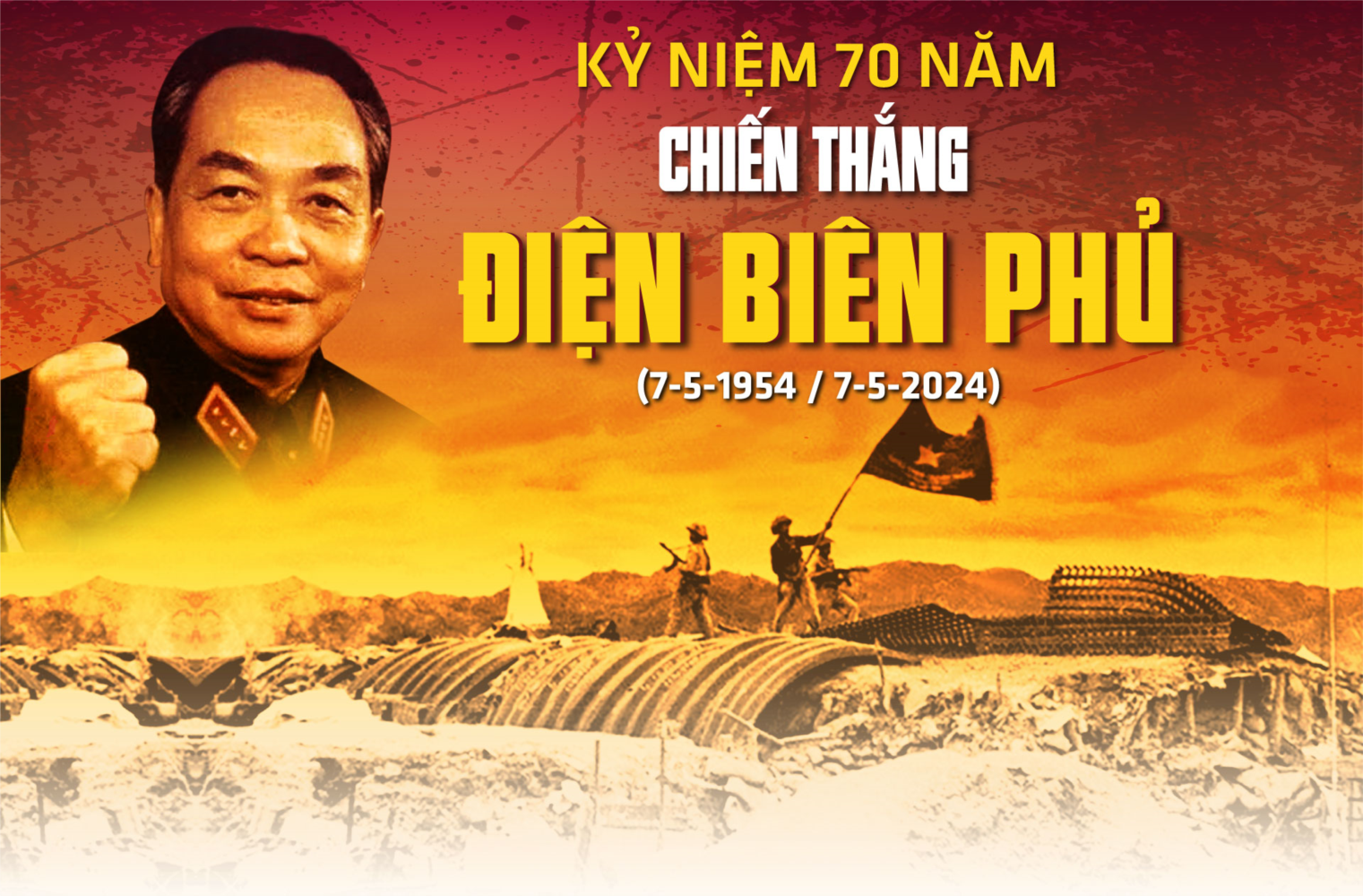 Ảnh trái: Đại tướng Võ Nguyên Giáp quan sát trận địa lần cuối cùng trước khi phát lệnh nổ súng mở màn chiến dịch Điện Biên Phủ. Ảnh phải: 17 giờ 05 phút ngày 13-3-1954, Đại tướng Tổng tư lệnh Võ Nguyên Giáp ra lệnh nổ súng tấn công tập đoàn cứ điểm Điện Biên Phủ.